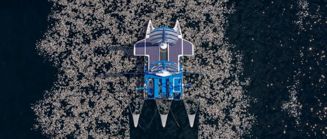 Le navire "chasseur de plastique" Manta est le premier bateau-usine de ce type. C'est le premier navire de mer capable de collecter, de traiter et de recycler (en flux continu) de grandes quantités de macro-déchets plastiques flottant à la surface de l'océan. La conception est axée sur de nombreuses technologies innovantes dans le domaine de la production d'énergie renouvelable, ce qui lui permet de minimiser son empreinte carbone globale tout en maximisant son autosuffisance énergétique.